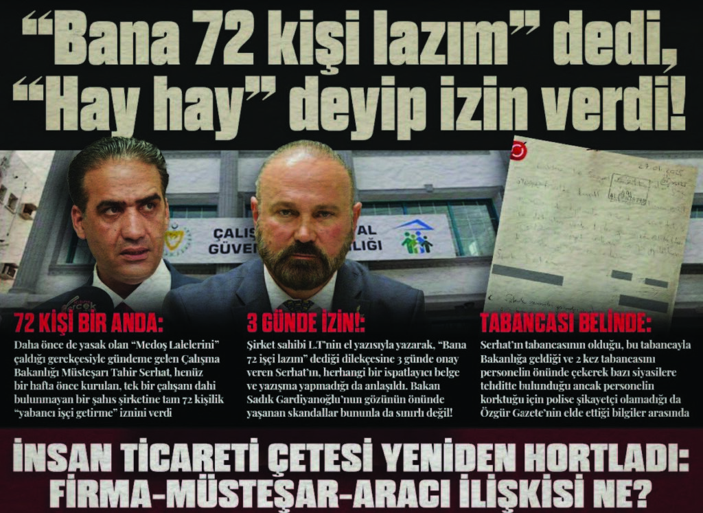 gerçekleştiriliyor… Çoğunlukla kayıt dışı çalıştırılan ve pasaportlarına da el konulan bu insanlar tehdit edildikleri halde kimseye derdini anlatamıyor. Muhaceret Dairesi’nin tek bildiği “sınırdışı” etmek, Polis’in tek bildiği göz yummak, Bakanlığın tavrı ise ortak olmak. Müsteşarından Bakanına kadar devletin de parçası olduğu bu ağ, seks köleliğinin yanına insan ticaretini de ekleyerek kktc’yi tam bir “insan hakkı ihlalleri merkezi” haline getiriyor. Bir yandan “ülkeye doldurulan göçmen işçilerden” şikayet edenleri