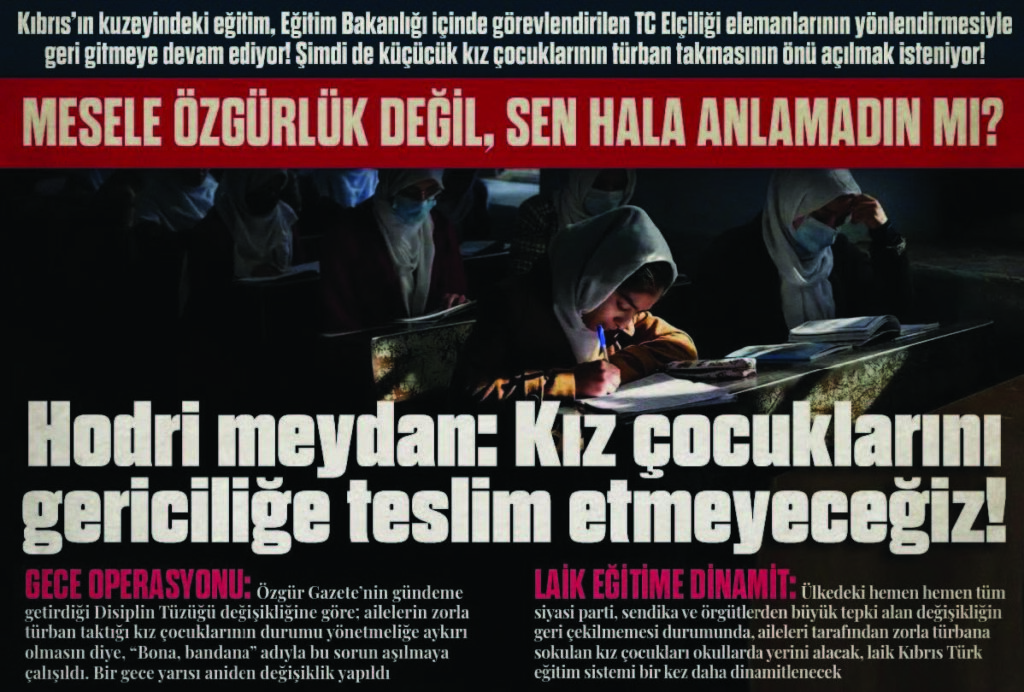 yapanlar, kadın satanlar, çocuk öldürenler ve hayvan katledenlerin coğrafyamızda yaptığı gibi, Kıbrıs’ta da dinsel gericiliği kullanıyorlar. Tabii ki “biz çocukların sorgulama ve öğrenme becerisini ortadan kaldırmaya