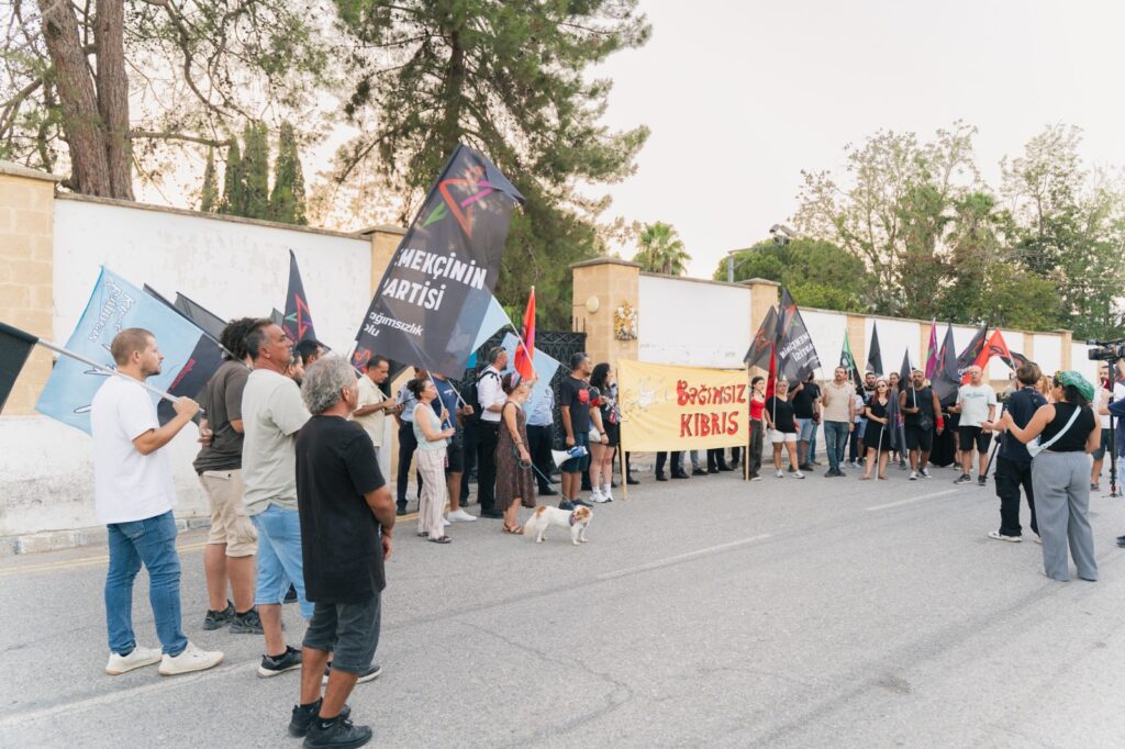 Daha sonra ”Ankara Elini Yakımızdan Çek, Bağımsız Kıbrıs Bütün Halklar Kardeştir!” sloganlarıyla TC Lefkoşa Büyükelçiliği önüne yüründü. Orada söz alan Emekçinin Partisi Bağımsızlık Yolu’nun Mali Sekreteri Münür Rahvancıoğlu, “Eğer bölünmüş adamızın kuzey yarısında bir Yunanistan elçiliği olsaydı oraya gitmek de boynumuzun borcu olurdu” diyerek konuşmasına başladı.