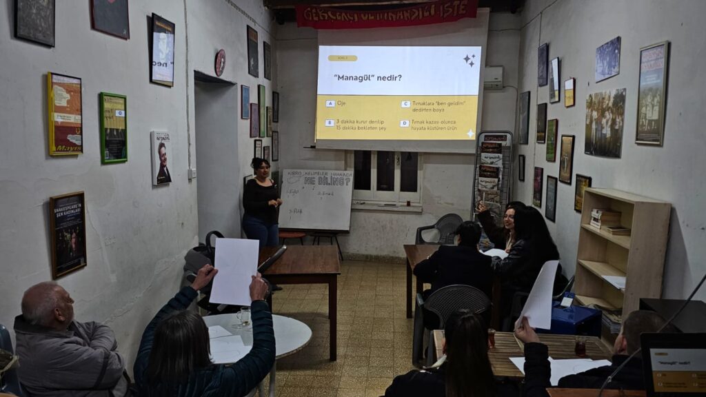 Gündelik yaşamda sıkça karşımıza çıkan ancak çoğu zaman üzerine düşünmeye fırsat bulmadığımız kavramlar, kişiler, olaylar ve mekânlar… Bu etkinlikte hepsi, belirlenen tema doğrultusunda yeniden anlam kazandı ve kıbrıs kelimeleri ve mekanları hakkında unuttuklarımızı hatırlatırken bilmediklerimizi de öğretti. Tabii ki bunların hepsini yaparken birlikte olmanın tadını çıkarıp çok eğlendik.
