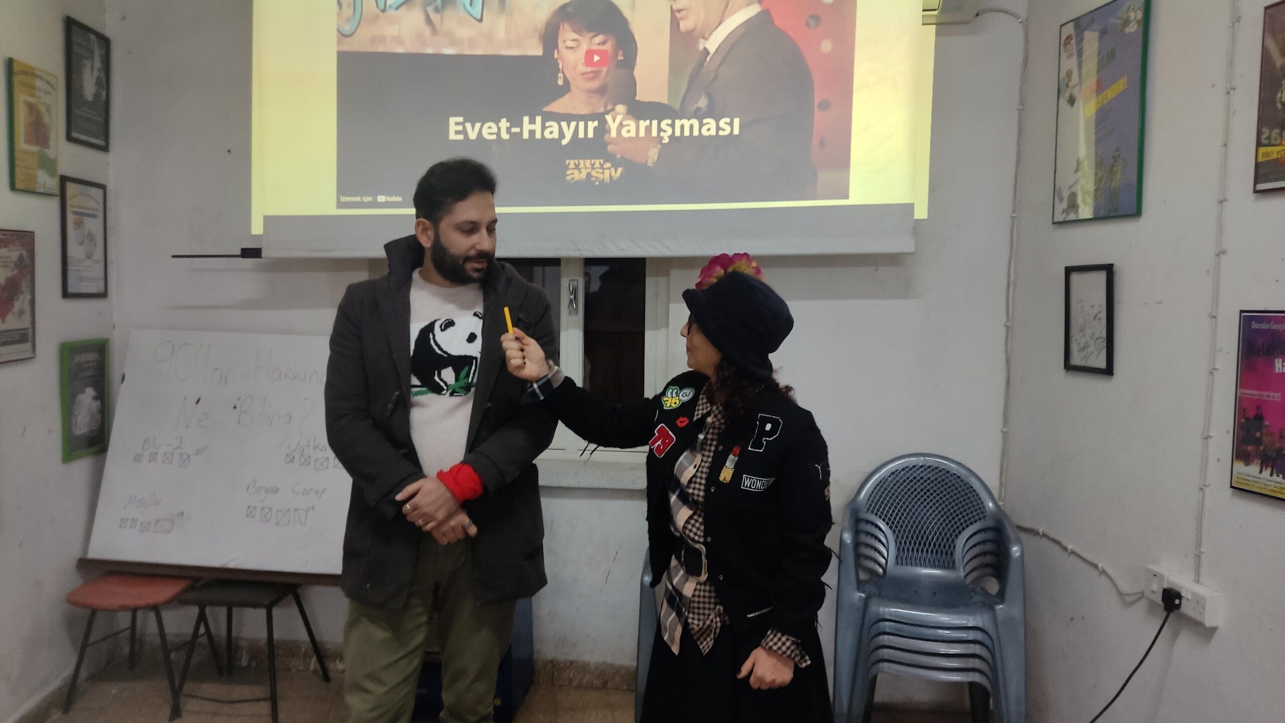 Baraka’nın yeni etkinliği Ne Biling’in ikincisinde, 23 Ocak Cumartesi akşamı 90’lı yıllara yolculuk yapıldı. 90’lar dönemi hakkında soruların ve içeriklerin yer aldığı geceye katılımcılar 90’lı yılları anımsatan kostümleri ve aksesuarlarıyla katıldılar.