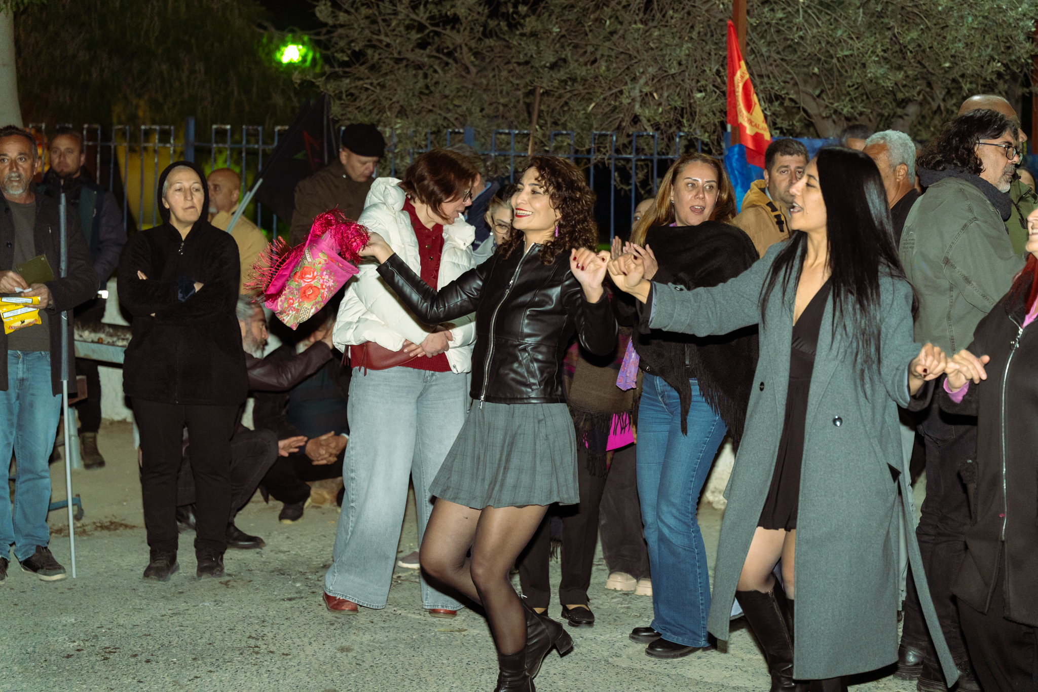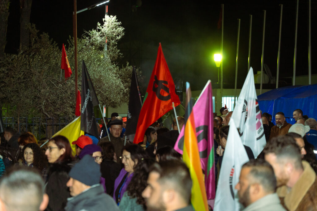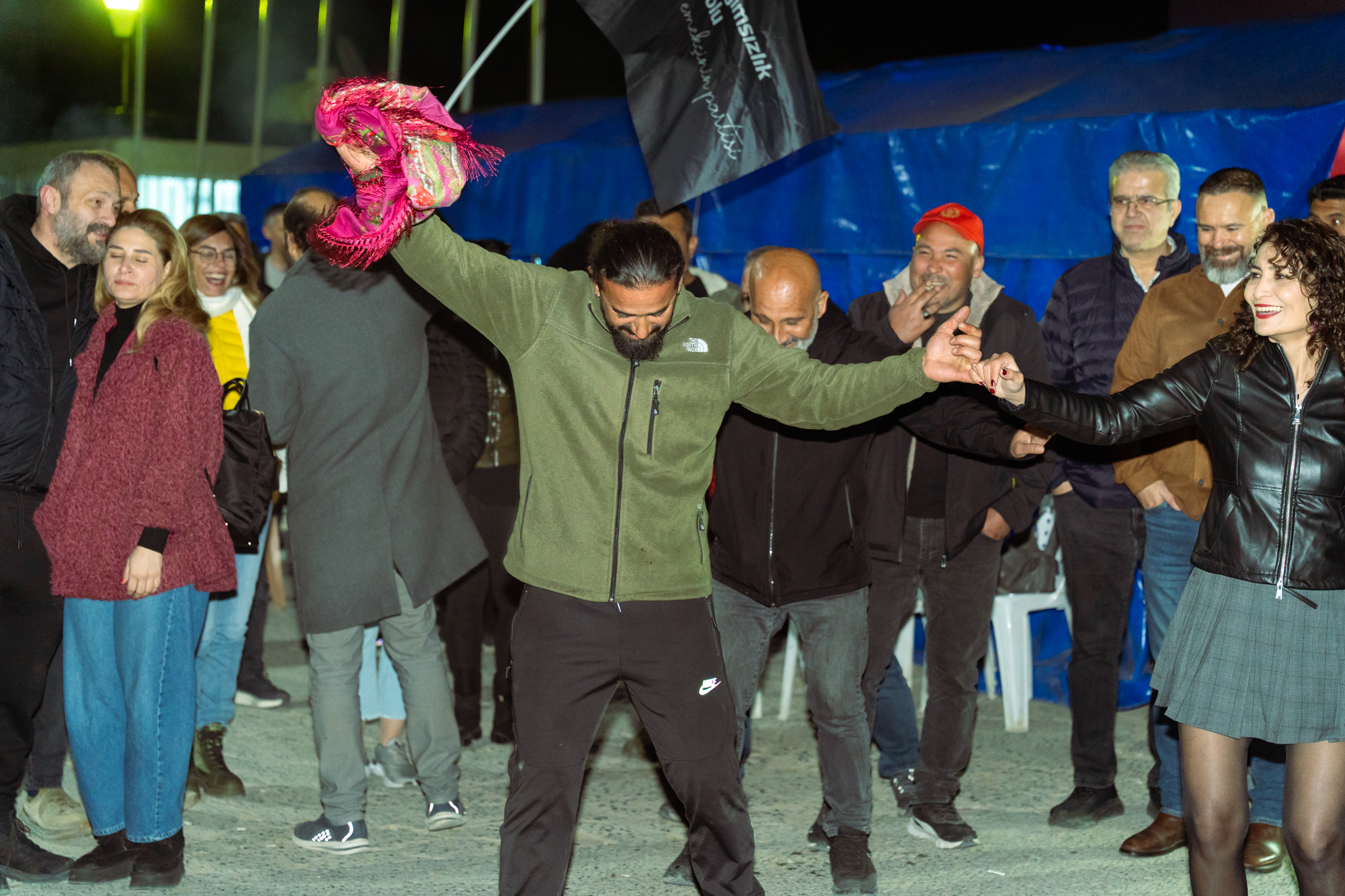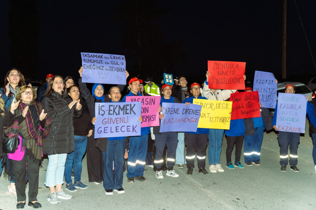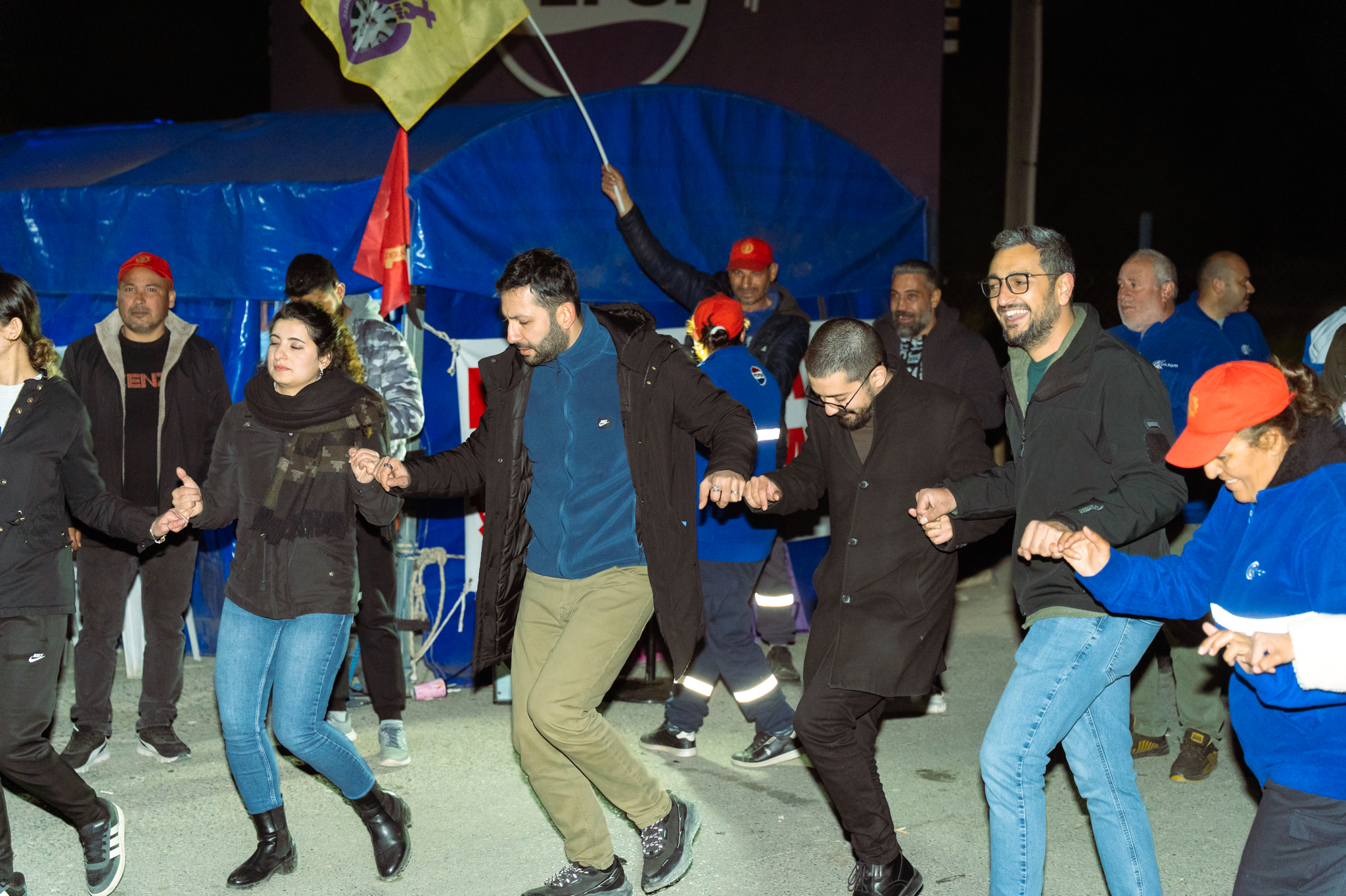 Girne basın açıklamasının ardından 8 Mart Organizasyon Komitesi ile birlikte EKTAM emekçilerinin direniş çadırına giderek dayanışma eylemine katıldık. Burada gerçekleştirilen etkinlikte emekçilerle birlikte mücadele şarkıları söylendi, dayanışma mesajları verildi ve sendikal hak mücadelesi veren emekçilerin yalnız olmadığı vurgulandı.