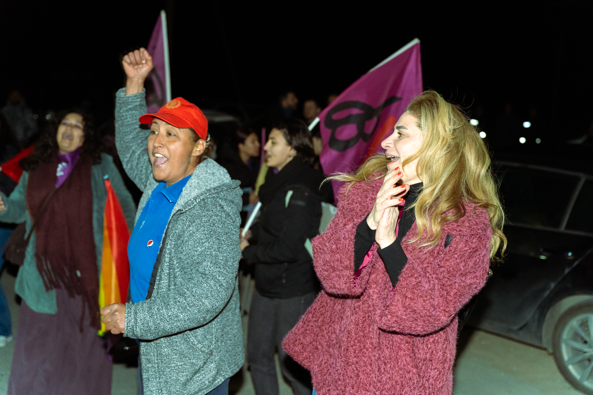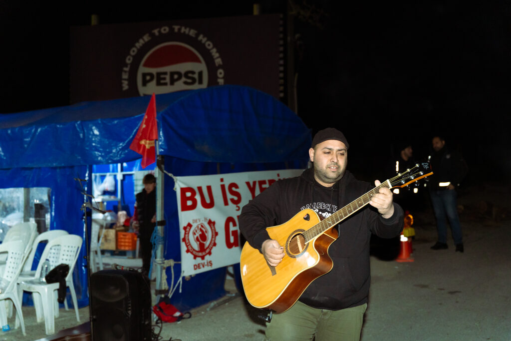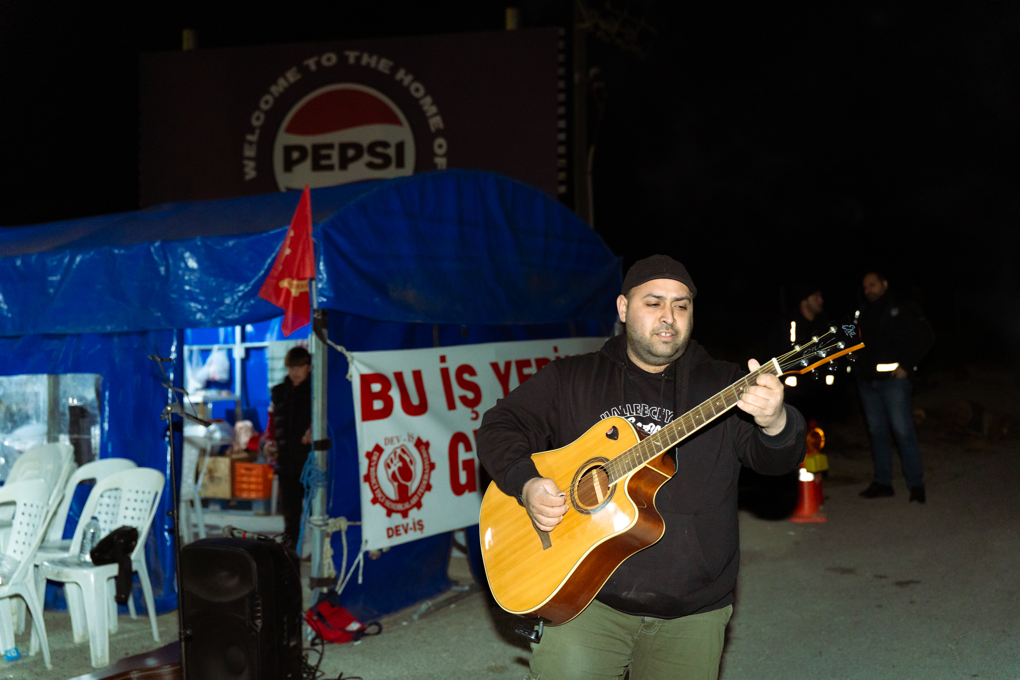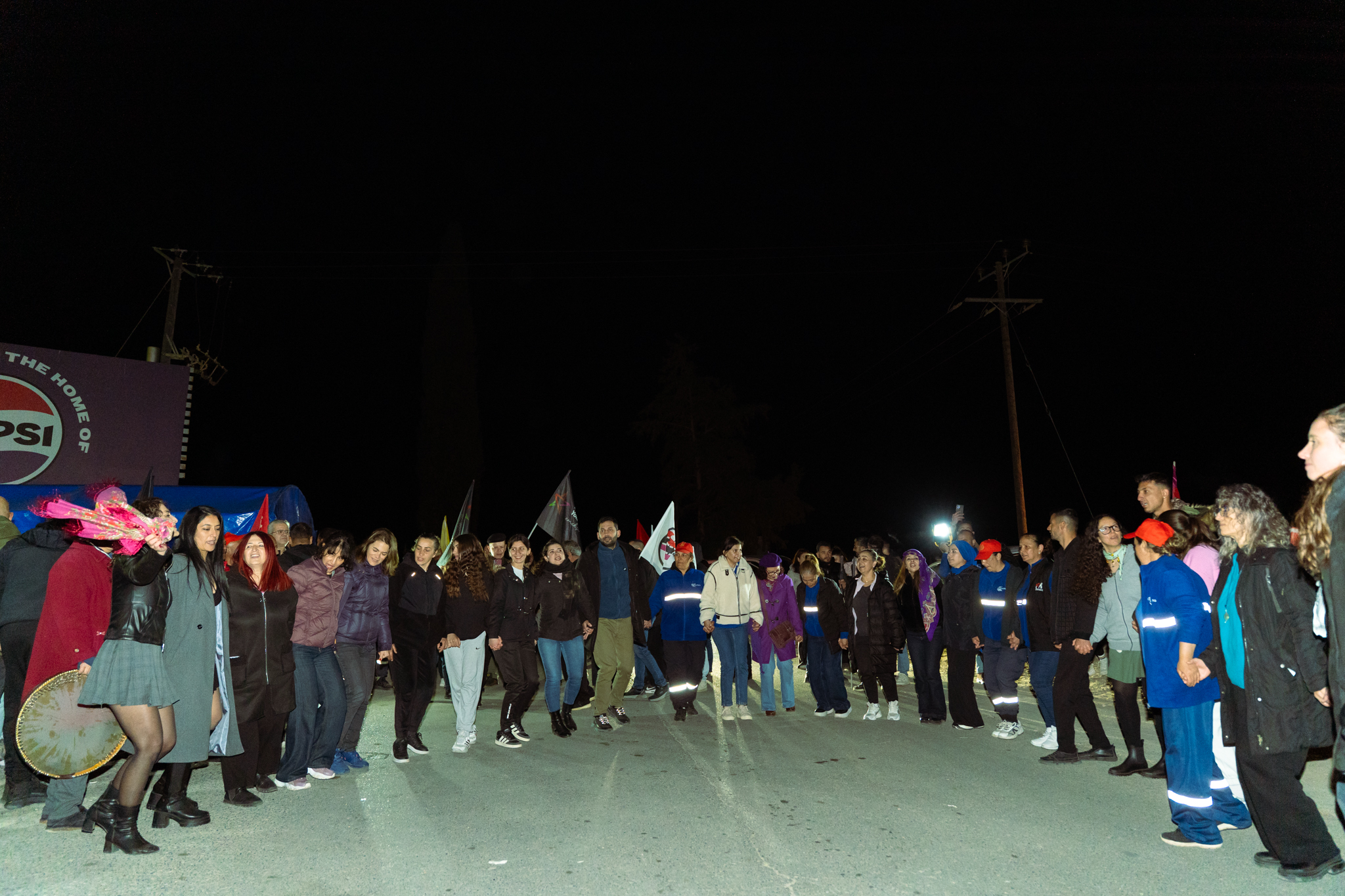 Girne basın açıklamasının ardından 8 Mart Organizasyon Komitesi ile birlikte EKTAM emekçilerinin direniş çadırına giderek dayanışma eylemine katıldık. Burada gerçekleştirilen etkinlikte emekçilerle birlikte mücadele şarkıları söylendi, dayanışma mesajları verildi ve sendikal hak mücadelesi veren emekçilerin yalnız olmadığı vurgulandı.