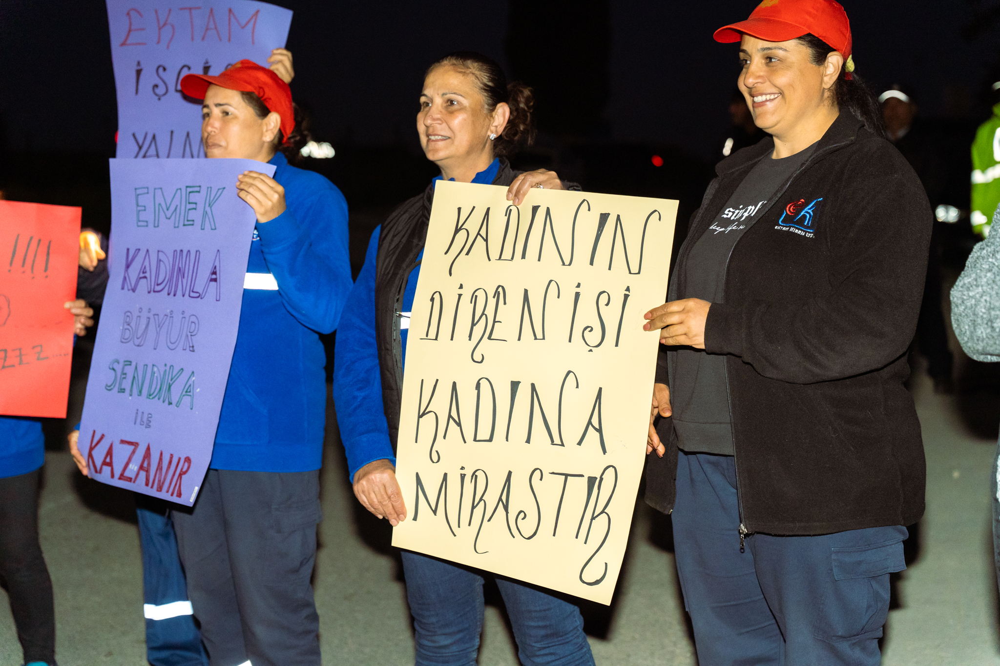 Yapılan konuşmalarda, EKTAM emekçilerinin verdiği mücadelenin yalnızca bir işyerinin meselesi olmadığı; güvencesiz çalıştırılan, sendikasız bırakılan ve emeği değersizleştirilen tüm emekçilerin ortak mücadelesi olduğu ifade edildi. Kadınların hem işyerlerinde hem de ev içinde çifte sömürüye maruz kaldığı bu düzende, sendikal örgütlenmenin ve dayanışmanın hayati önemde olduğu vurgulandı.