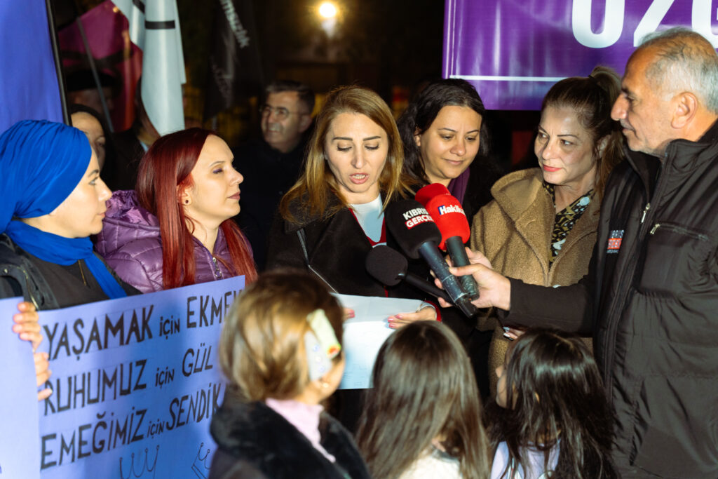 Girne Kaymakamlığı önünde okunan basın açıklamasında, kadın emeğinin görünmez kılınmasına, güvencesiz ve düşük ücretli çalışmaya, ev içi emeğin değersizleştirilmesine ve kadınların yaşamın her alanında karşı karşıya kaldığı eşitsizliklere dikkat çekildi. Kadınların özgürleşmesinin emek mücadelesiyle ve örgütlü dayanışmayla mümkün olduğu vurgulanırken, eşit, özgür ve insanca bir yaşam için kadınların mücadeleyi büyütmeye devam edeceği ifade edildi.