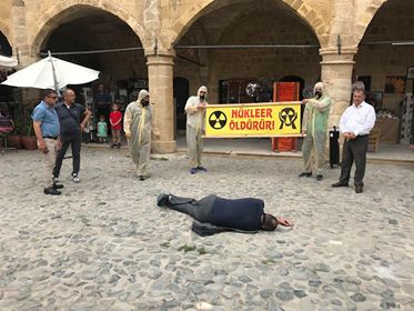 Baraka Kültür Merkezi’nin de bileşeni olduğu Nükleere Hayır Platformu, Lefkoşa çarşısında şok eylem gerçekleştirerek nükleer santrallerin tehlikelerine ve Akkuyu Nükleer Santrali’nin ülkemize olumsuz etkilerine dikkat çekti. Tiyatral farkındalık etkinliğine vatandaşlar da ilgi ve dikkat göstererek izledi ve katıldı. Nükleer santrallerin ölüm saçtığının, Çernobil ve Japonya’da yüzlerce insanın ölümüne sebep olduğunun vurgulandığı etkinlikte, güneş ve rüzgardan yararlanılan temiz enerjinin mümkün olduğu da ortaya kondu.