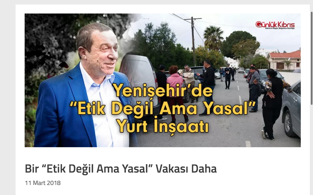 Yenişehir bölgesinde, 2 arsa büyüklüğünde devlete ait arazi, Serdar Denktaş’a bağlı Devlet Emlak ve Malzeme Dairesi tarafından Denktaş’ın kızı ve oğlunun şirketine peşkeş çekilirken, Denktaşların buraya 8 katlı 400 odalı yurt yapmayı planladığı öğrenildi. Mahalle sakinleri ise, mahallelerini korumak adına “Yenişehir Mahalleme Dokunma İnisiyatifi” adı altında direnerek şirket yetkilileri ve Devlet Emlak ve Malzeme Dairesi personelini araziye sokmadı.